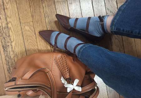 MILF ronde brune 40 ans typé eurasienne, stylé BCBG, propose collants fins et chaussettes, féminins et élégants, portés.