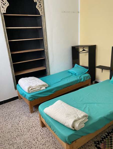 • Des lits avec garde-robe et bureau dans une chambre double à 270DT