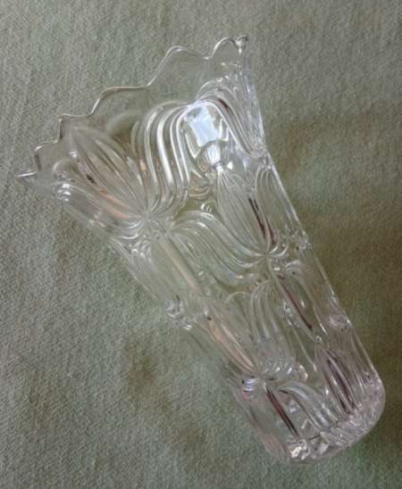 Superbe vase cylindrique en verre transparent épais et lourd.