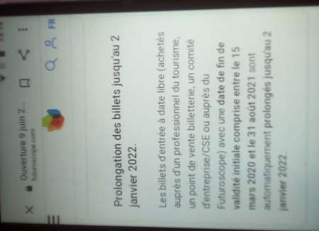 Vends 5 billets adultes futuroscope non utilisés valables initialement jusqu'au 31 décembre 2020.