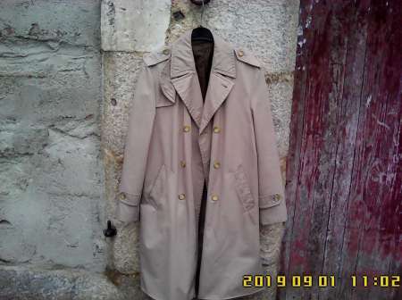 Gabardine imperméable demi-saison, encolure 39 -40. Marque Tergal, fibre polyester mélangée. Convient pour une taille d’environ 1,70 m. Excellent état. C’est idéal pour ceux qui recherchent un « look », début des années 1970 !
